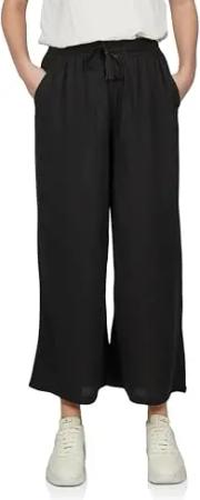 Palazzo Hose Damen Sommer 7/8 Loose Fit DFKate Weites Bein Sommerhose leicht Stoffhose Knöchellang Elastische Taille Schwarz XL, Größe:XL, Farben:Black