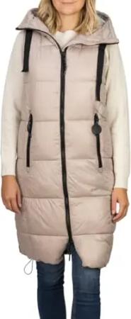 Steppweste Damen lang mit Kapuze Regular Fit DFCaro Weste Knielang Outdoor Reißverschluss Taschen Herbst Winter Beige M, Größe:M, Farbe:String Beige