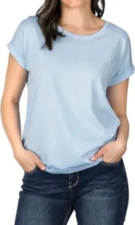Tshirt Damen Baumwolle Regular Fit DFSophie Rundhals Kurzarm Oberteile Top Sommer Einfarbig Streifen, Größe:XL, Farben:Bright Sky Blue