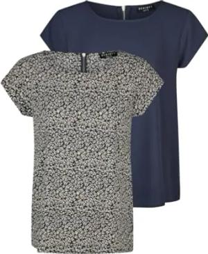Tshirt Damen Set DFAda Regular Fit 2er Pack Rundhals Kurzarm Top Sommer Reißverschluss Basic Muster Einfarbig, Größe:M, Farben:Navy/Navy-Light Sand