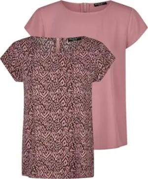 Tshirt Damen Set DFAda Regular Fit 2er Pack Rundhals Kurzarm Top Sommer Reißverschluss Basic Muster Einfarbig, Größe:XXL, Farben:Rose/Rosa-Anthra