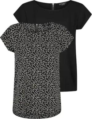 Tshirt Damen Set DFAda Regular Fit 2er Pack Rundhals Kurzarm Top Sommer Reißverschluss Basic Muster Einfarbig, Größe:XXL, Farben:Black/Black-White