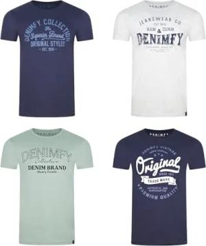 Tshirt Herren Baumwolle Regular Fit DFNuri 4er Pack Set Rundhals Kurzarm Sommer Tee Shirt Logoprint, Größe:S, Farben:Farbmix 2