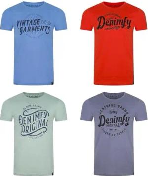 Tshirt Herren Baumwolle Regular Fit DFNuri 4er Pack Set Rundhals Kurzarm Sommer Tee Shirt Logoprint, Größe:3XL, Farben:Farbmix 4