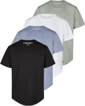 Tshirt Herren lang geschnitten Set 100% Baumwolle Regular Fit DFPaco 4er Pack Basic Rundhals Kurzarm Sommer Tee Shirt, Größe:M, Farbe:Pack 2