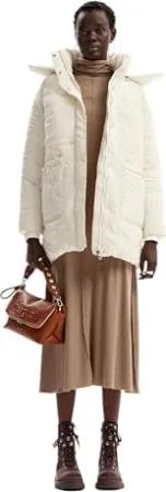 Women's Woman Woven Padded Long Overcoat, White, 42
