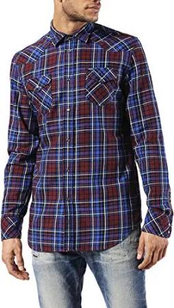 S-Nico Camicia Herren Hemd (M, Schwarz/Rot)