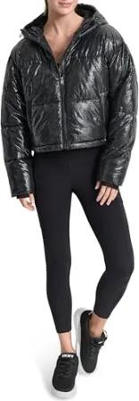 Women's Embossed Crosswalk Print Cropped Puffer Jacket, Black, Small
