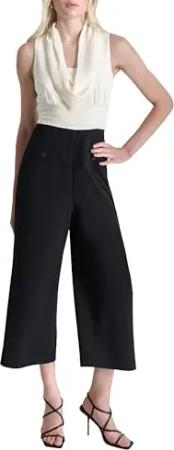 Women's Sleeveless Vest Jumpsuit, Black/Ivory, Size 36
