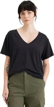 Deep V Neck Tee Tees Women's Beautiful Black XS