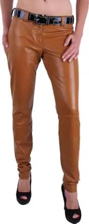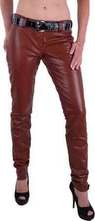 D&G Damen Hose Lederhose (DE/NL/SE/PL, Numerisch, 36, Slim, Regular, Braun)