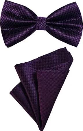 2er Set Herren Fliege und Einstecktuch farblich passend gebunden und größenverstellbar aubergine