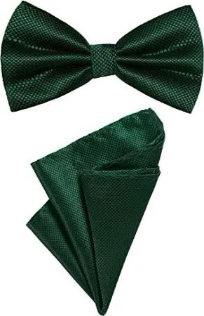 2er Set Herren Fliege und Einstecktuch farblich passend gebunden und größenverstellbar dunkelgrün