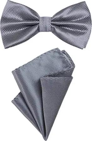 2er Set Herren Fliege und Einstecktuch farblich passend gebunden und größenverstellbar grau