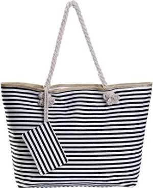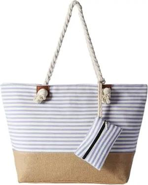 Strandtasche XXL mit Reißverschluss - Umhängetasche Damen, Shopper Tasche Damen im Beach Look mit Schulterriemen - Urlaub Must Haves Beach bag - Streifen blau weiß