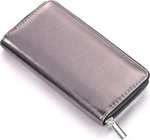 Damen Geldbörse weich im Metallic-Look mit Reißverschluss Portemonnaie in Grau 20 x 10 x 2,5 cm
