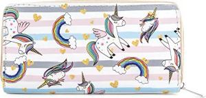 Geldbörse Damen mit Reißverschluss Portemonnaie Geldbeutel Damen Kinder Mädchen Einhorn Unicorn Muster Regenborgen