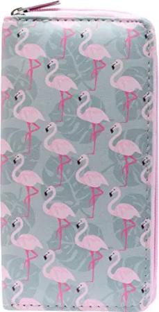 Geldbörse Damen mit Reißverschluss Portemonnaie Geldbeutel Damen Kinder Mädchen Flamingos