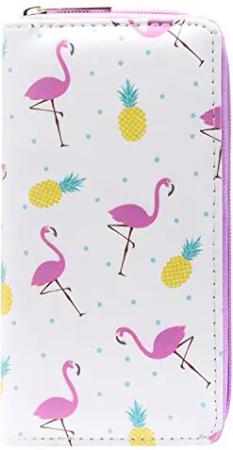 Geldbörse Damen mit Reißverschluss Portemonnaie Geldbeutel Damen Kinder Mädchen Flamingos und Ananas