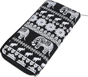 Geldbörse Damen mit Reißverschluss Portemonnaie Geldbeutel Damen Kinder Mädchen Muster Elefanten schwarz weiß