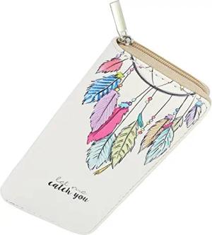 Geldbörse Damen mit Reißverschluss Portemonnaie Geldbeutel Damen Kinder Mädchen Muster Federn mit Kette beige Pastell