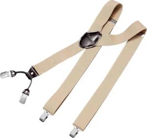 Hosenträger Herren extra stark beige 3,5 cm Hosenträger Herren breit mit brauem Leder in Y-Form lang - Starke Clips passend für Anzug Jeans Chinos Vintage Rockabilly Suspenders