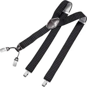 Hosenträger Herren extra stark gepunktet schwarz weiß 3,5 cm Hosenträger Herren breit mit brauem Leder in Y-Form lang - Starke Clips passend für Anzug Jeans Chinos Vintage Rockabilly Suspenders