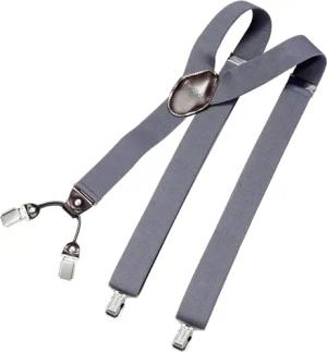 Hosenträger Herren extra stark grau-blau 3,5 cm Hosenträger Herren breit mit brauem Leder in Y-Form lang - Starke Clips passend für Anzug Jeans Chinos Vintage Rockabilly Suspenders