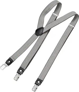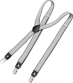 Hosenträger Herren gestreift grau weiß schmal 2,5 cm - Extra starke Clips für Anzug - Hosenträger Herren extra stark - Ideal für Männer oder Damen Rockabilly Suspenders