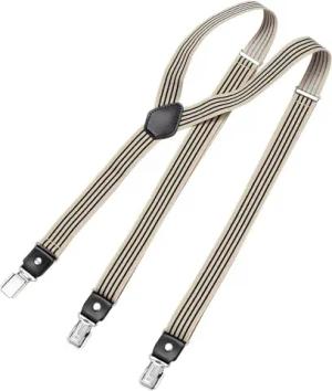 Hosenträger Herren gestreift schwarz beige schmal 2,5 cm - Extra starke Clips für Anzug - Hosenträger Herren extra stark - Ideal für Männer oder Damen Rockabilly Suspenders