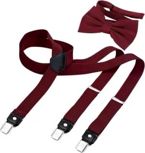 Hosenträger und Fliege Set für Damen und Herren, Y-Form, 2,5 cm breit, handgefertigt - Elegantes Accessoire für Hochzeit, Party, Smoking, Dunkelrot