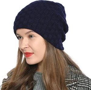 Mütze Damen Beanie Wintermütze Slouch Strickmütze mit warmen Fleece Innenfutter dunkelblau Navy