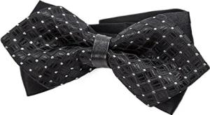 spitze Herren Fliege Schleife im Retro Look mit Haken gebunden vorgebunden und längenverstellbar schwarz glänzend mit silbernen Punkten