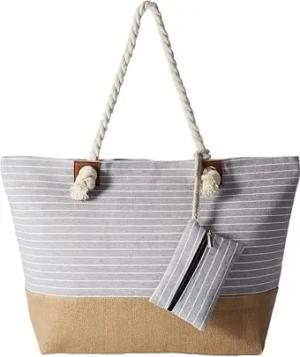 Strandtasche mit Reißverschluss, Große Strandtasche XXL, Shopper Tasche Damen - Praktische Beach bag Umhängetasche Damen Badetasche für Strand und Meer - gestreift grau