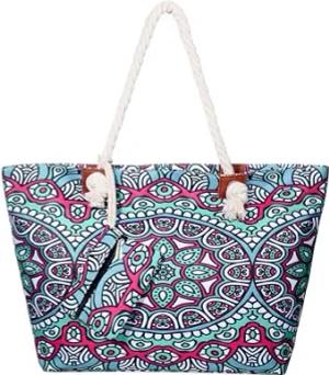 Strandtasche XXL mit Reißverschluss - Umhängetasche Damen, Shopper Tasche Damen im Beach Look mit Schulterriemen - Urlaub Must Haves Beach bag - Hippie Psychedelic 70`s