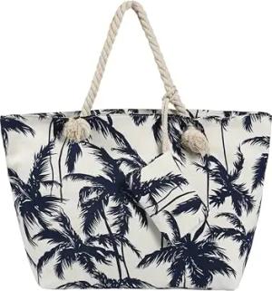 Strandtasche mit Reißverschluss, Große Strandtasche XXL, Shopper Tasche Damen - Praktische Beach bag Umhängetasche Damen Badetasche für Strand und Meer - Palmen weiß