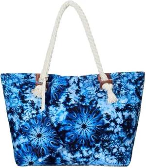 Strandtasche XXL mit Reißverschluss - Umhängetasche Damen, Shopper Tasche Damen im Beach Look mit Schulterriemen - Urlaub Must Haves Beach bag - Blätter blau
