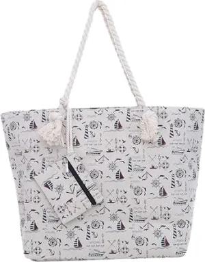 Strandtasche XXL mit Reißverschluss - Umhängetasche Damen, Shopper Tasche Damen im Beach Look mit Schulterriemen - Urlaub Must Haves Beach bag - Anker beige blau