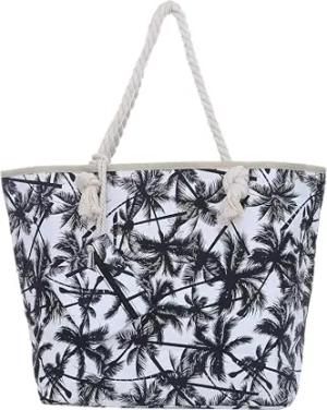 Strandtasche XXL mit Reißverschluss - Umhängetasche Damen, Shopper Tasche Damen im Beach Look mit Schulterriemen - Urlaub Must Haves Beach bag - Palmen weiß schwarz