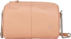 Barell -Ledertasche, Umhängetasche mit Kette und Leder, stilvolle Mode kleine zylindrische Tasche mit Reißverschluss Puder rosa