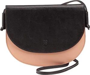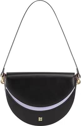 Damen-Halbmond-Umhängetasche aus Hartleder, Made in Italy, mit Doppel-Schulterriemen und Magnetverschluss Schwarz