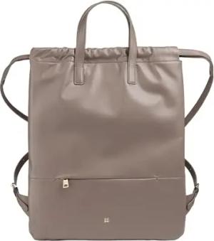 Damen Rucksack aus weichem Leder, Rucksack mit Kordelzug und Magnetknopf, doppelter Griff, Schlichter eleganter Rucksack Taupe