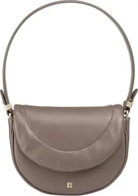 Damen Umhängetasche aus gestepptem Leder, kleine Elegante Gesteppte Handtasche mit Überschlag, abnehmbaren Schulterriemen Taupe
