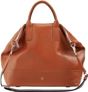 Elegante Damen-Umhängetasche aus echtem Leder, Handtasche mit Zwei Griffen und Reißverschluss Zimt