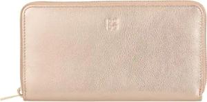 Große Bunte Damenbrieftasche RFID in echtem Leder mit Rundum - Reißverschluss Puder rosa