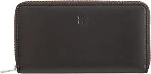 Große Bunte Damenbrieftasche RFID in echtem Leder mit Rundum - Reißverschluss Dunkelbraun