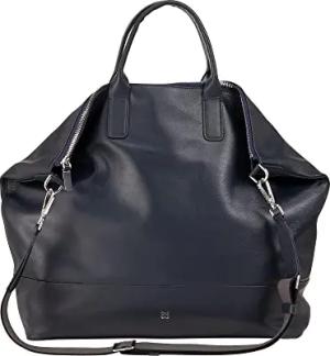 Große Damentasche aus weichem Leder, geräumige Umhängetasche mit abnehmbarem Riemen, Handtasche mit zwei Griffen und Reißverschluss Navy