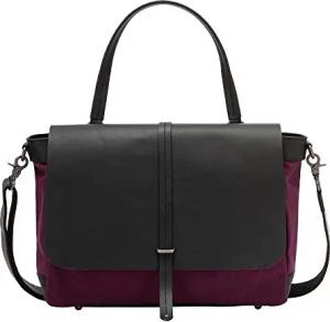 Grosse Damen Schulter-Tasche aus Leder und Canvas Stoff Bicolor Postman mit abnehmbarem Schulterriemen Pflaume