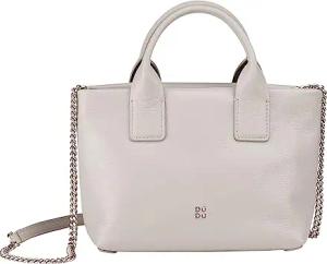 Kleine Damen-Umhängetasche aus echtem Leder, Elegante Mini-Abendtasche, 22 x 13 cm, doppelte Griffe, Kettenriemen, Reißverschluss Perla