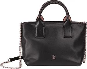 Kleine Damen-Umhängetasche aus echtem Leder, Elegante Mini-Abendtasche, 22 x 13 cm, doppelte Griffe, Kettenriemen, Reißverschluss Schwarz Rose
